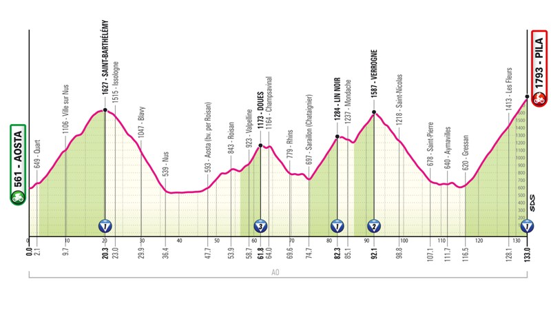 14-й этап – почти без равнинных отрезков, короткий, но выматывающий 133-км этап с набором высоты более 4400 м. Пелотон отправится в Пилу (Pila), подъём, который возвращается впервые за более чем 30 лет.