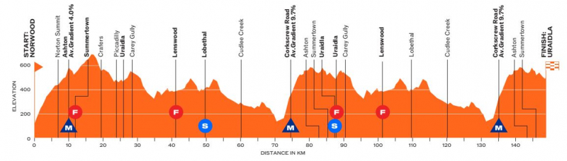 Комментарий Стюарта О’Грэйди, директора гонки: ««На бумаге это, возможно, самый сложный этап за всю историю Тура Даун Андер. Традиционно пелотон поднимался на Коркскрю и поворачивал направо в Кэмпбеллтаун, но на этот раз они свернут налево наверху, так как подъём продолжится по Монтакьют-роуд, затем обратно вниз через Урайдлу (Uraidla) на финальный круг. Это будет действительно сложно».
