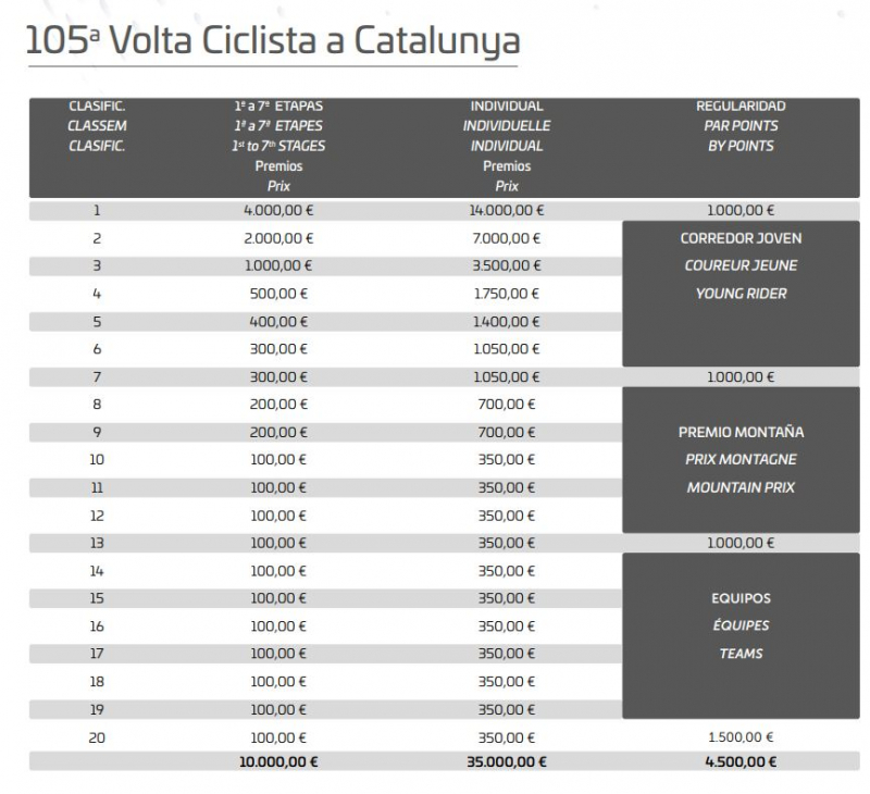 Призовой фонд Вуэльты Каталонии-2026