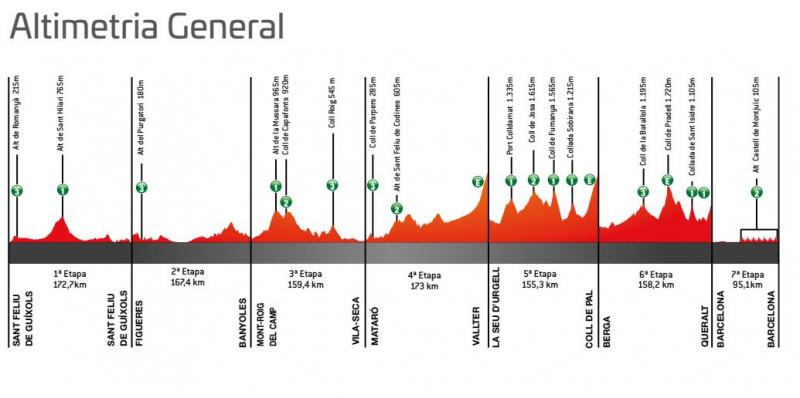 За 7 этапов с 23 по 29 марта от Сан-Фелиу-де-Гишольс до Барселоны участники преодолеют в общей сложности 1081,1 км с набором высоты более 20 000 метров.