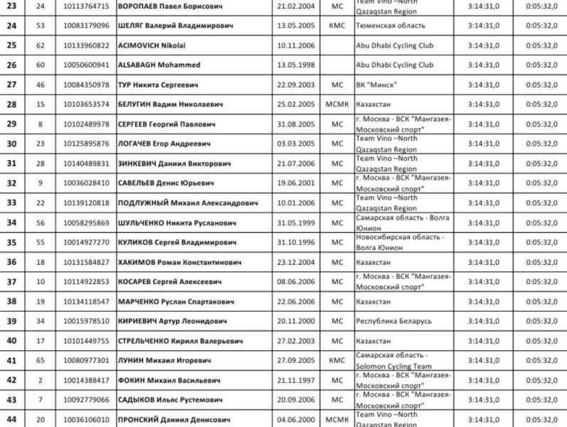 2. Савва Новиков («Мангазея — Московский спорт») 0:01